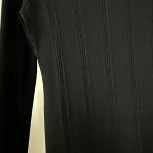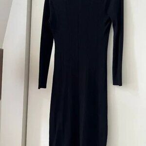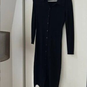 Super flattering ribbed black dress, with collar and ribbing details. Form fitting and super comfortable.
