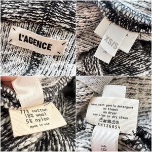 Cozy meets cool in this L’Agence short-sleeve hoodie sweater. Crafted from a cotton-wool blend, it features a marled black-and-white knit, relaxed poncho-style silhouette, zip front, front pockets, and a drawstring hood. Perfect for layering or lounging in effortless style. Made in the USA.