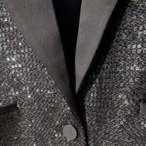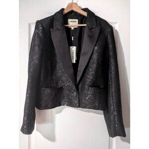 The Scarlet crop blazer by L'AGENCE flaunts a sequin embellished finish and satin lapel.