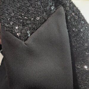 New with tags. Looks like this style originally came with a removeable flower applique on lapel, however this not included. There is a slight pull in the satin where it originally would be as shown in last two images.
