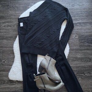 L'AGENCE 🖤 Zoey Asymetrical Merino Wool Cable Knit Sweater In Black