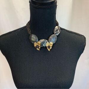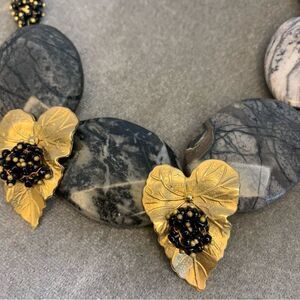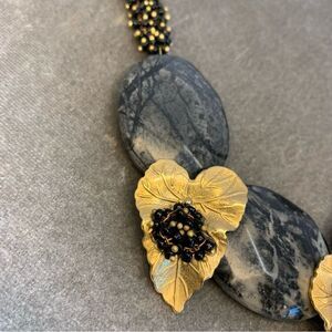 LAKU gray gold tone Rock stone leaf beaded necklace