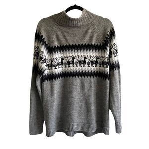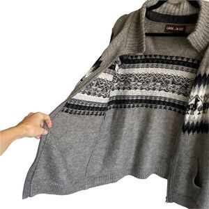 LAMA LUX Zip Front Wool Knit Cardigan Sweater Jacket Peru Gray Black White M