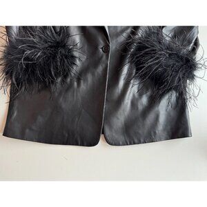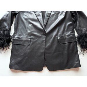 LAMARQUE Galia Black Faux Leather Feather Trim Oversized Blazer, Size XS/S