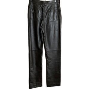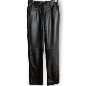 Nappa Agnello = Lamb Leather. US Size 6-8. These leather straight leg trousers show no signs of wear or use and are in excellent pre owned condition. Fully lined in 100% Rayon. Please check all photos for condition, detail and measurements. All clothing items I list come to you clean and to the best of my knowledge free of rips, tears and stains unless disclosed in the listing. From a smoke free, pet free home.