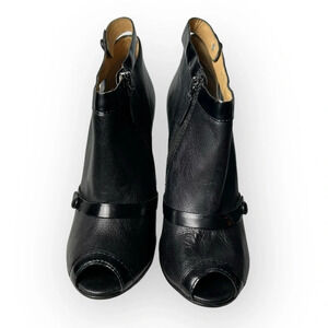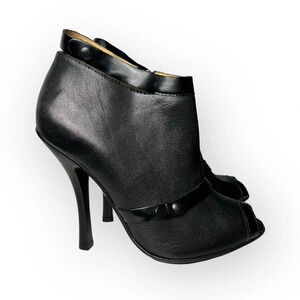 L.A.M.B Black Leather Peep Toe Ankle Booties 8