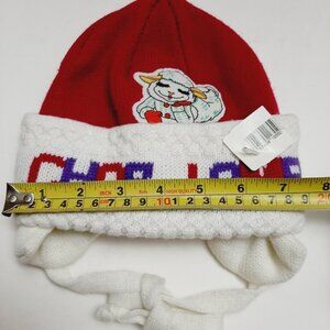 LAMB CHOP Lambchop Shari Lewis Knit Ear Flap Cozy Hat Pink & White Kids OS