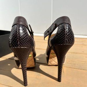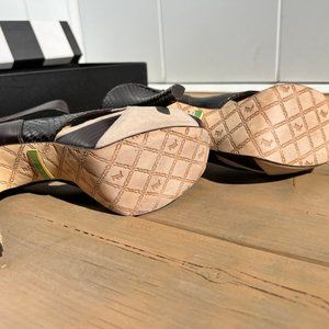 LAMB platform peep toe heels. Mixture of fine leather and suede tan leather.