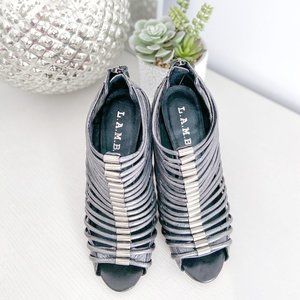 L.A.M.B. Gunmetal Leather Strappy Cage Sandals