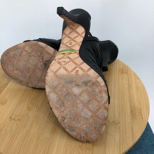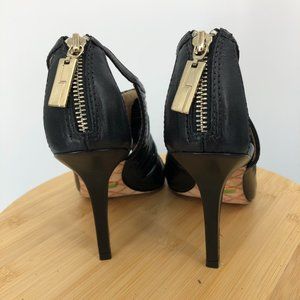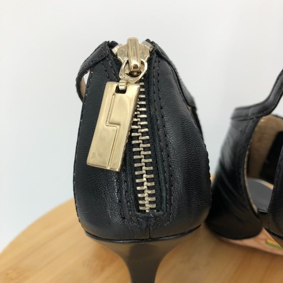 L.A.M.B. Gwen Stefani Black Leather Caged Ankle open toe Pumps size 9.5