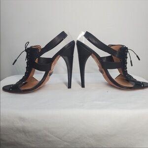 5 inch heel, features elastic lacing, lovely leather, and textured heel.