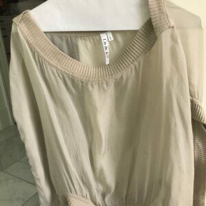 L.A.M.B. Medium SILK blouse shirt tan / gold / green