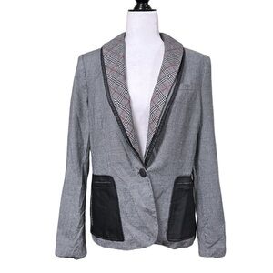 L.A.M.B. Mixed Media Tweed Check Single Button Blazer