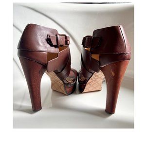 Sexy L.A.M.B. (by Gwen Stefani) Ankle Platform Wooden Chunky Heels.
