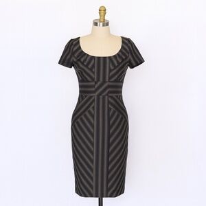 L.A.M.B. dress, Gwen Stefani Fall 2008, L.A.M.B. wool dress size 4, designer geometric dress, collectible Gwen Stefani clothing, wool blend sheath dress, L.A.M.B. by Gwen Stefani runway dress, size 4 structured dress, vintage L.A.M.B. fashion