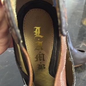 LAMB (by Gwen Stefani) brown and caramel, stiletto leather booties, NWT, authentic, never worn (some store dust on sole); size 7.5, though it would fit smaller.
