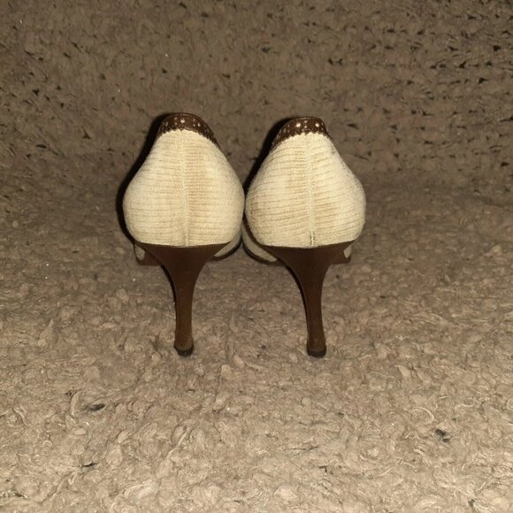 Size 37.5, measures 10" via insole with 3.5" heel and 3.25" wide