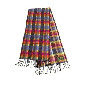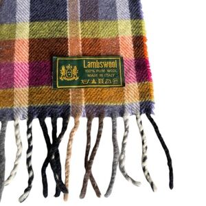 LAMBSWOOL 100% Pure Wool, Made in Italy Colorful Plaid Scarf