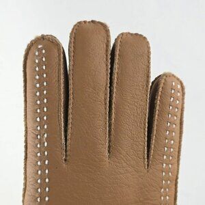New with tags, women's cozy Lamo leather gloves in a light tan, lined with 100% premium Australian sheepskin wool with exposed stitched seams detailing, size Medium.