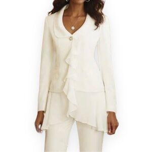 This elegant pantsuit can be worn to a wedding or any other formal occasion. Features a beautiful rhinestone front button. 4 hidden front buttons. NWT