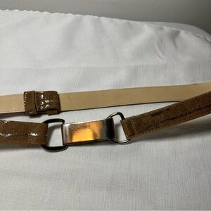 Stylish brown leather belt featuring a sleek silver buckle. Perfect for adding a touch of elegance to any outfit.