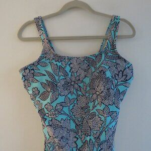 LAND'S END Geometric Floral Print One Piece Swimsuit Stretch Vacation