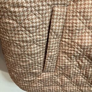 LAND’S END SZ 1X (16-18) Houndstooth Quilted Funnel Collar Packable Jacket Coat. Slanted pockets. Packs tightly for travel. Super cute for all day wear. Buttons have been replaced with new buttons. Keep cozy and look stylish all day long. Pouch included.