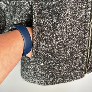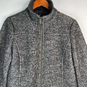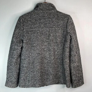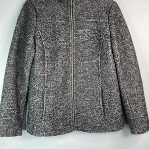 Ladies Marled black and grey loop knit weave Lands End wool blend jacket.
