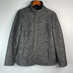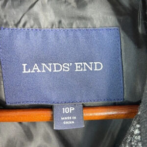 LANDS END Wool Zip Jacket Marled Black Grey High Neck Pockets Size 10P
