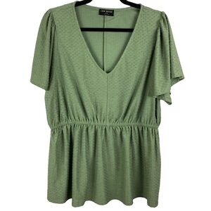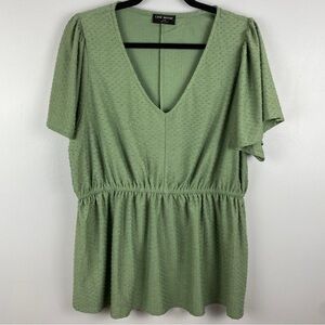 Lane Bryant Sea Spray Swing Flutter-Sleeve Clip Dot Babydoll Top Size 14/16