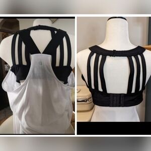 Lane Bryant Livi Active strappy blue and black sports bra molded under wire 42 C. New without tags, Never worn. Best fit for a shorter torso and average sized shoulders. A 42 B is also available in another listing.