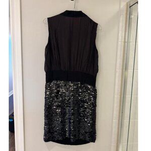 This spectacular black sequin dress by LANVIN is the ultimate statement piece, exuding luxury and Parisian elegance. This specific style with the distinctive ruffled V-neckline is a notable design from the brand's collections under Alber Elbaz. It is perfect for making an unforgettable entrance at any cocktail party, New Year's Eve event, or formal occasion.