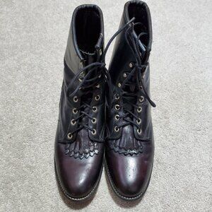 LAREDO Two-Tone Rambler Lace-Up Boots Kiltie Victorian Burgundy Black Women's 10