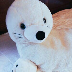 LARGE 27"W x 14"H SEAL MOM & PUP Stuffy Plush NWOT