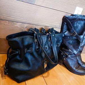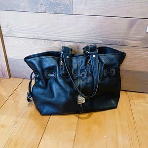 LARGE Dooney & Bourke black Pebble Grain 100% Leather Bag Tote Shoulder