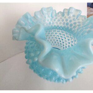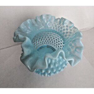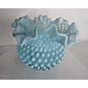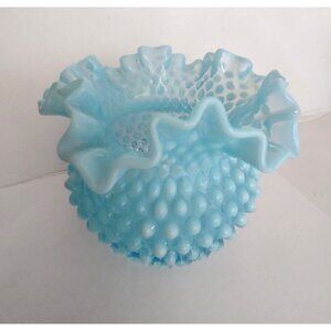 LARGE FENTON HOBNAIL VASE BLUE OPALESCENT RUFFLED RIM GLASS 5 1/4"