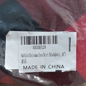 * Red and Black buffalo plaid Christmas Tree Skirt with white faux fur trim.
