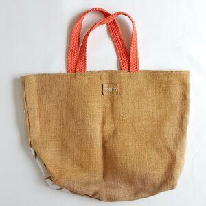 LARGE VICHY BEACH BAG Tropical Tote Bag Burlap with Coral Handle and Interior