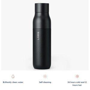 The LARQ Bottle PureVis™ is the world's first self-cleaning water bottle and water purification system. It uses PureVis technology to eliminate up to 99%* of bio-contaminants such as E. coli from your water and bottle.