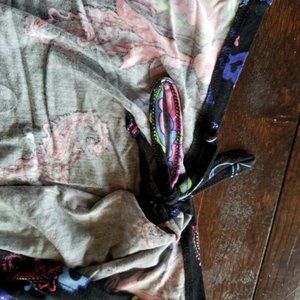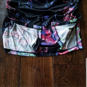Skirt: Black/Pink/White Floral Skirt. Elastic waistband. Two small slits on each ruched side. Adjustable drawstring to make longer or shorter. Plenty of stretch.