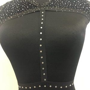 Black Fishnet Rhinestone 2pc set with G string and Harness top (nude panty and cross pasties not included)