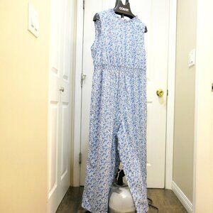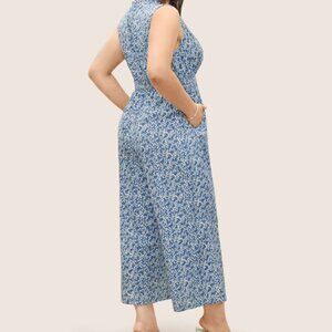 LAST CHANCE - Floral Ditsy Floral Mock Neck Jumpsuit with Pockets