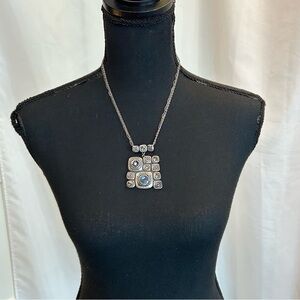 Latasia chrome gray silver blue crystal rhinestone pendant necklace