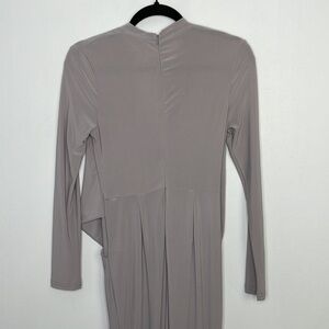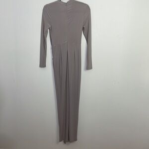 In good second hand condition gently worn. 92% spandex 8% spandex. There’s some loose stitch on the back but no holes. The front neckline is so pretty and flattering with the pleats and the tie front. Side pockets. Stretchy type of fabric. Measure lay flat: shoulder 16’’ bust 15,5’’ waist 14,5’’ hips 19’’ rise 13,5’’ inseam 29’’ total length 55’’ sleeve length 23,5’’. Sold as it.
