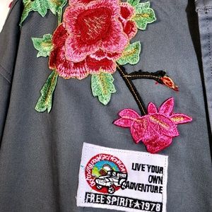 L'ATISTE Grey Denim Jacket with Embroidery Details