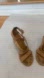 LATITUDE Femme, Leather Sandals/Wedges in Tan & Blue Patent leather. Made in Italy, Size 37/7. Please note these wedges FIT SMALL, more like a 6.5. Soles are also made of leather.