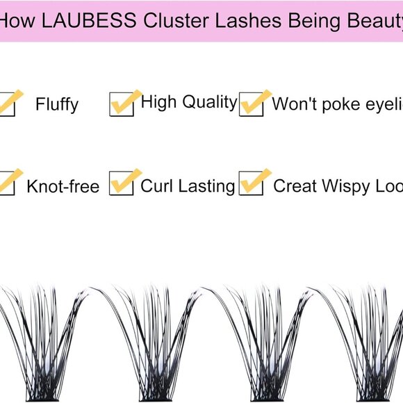 cluster lashes, eyelash extensions, DIY lash extensions, faux mink lashes, lash clusters, 20D lashes, 40D lashes, D curl lashes, individual lashes, mixed tray lashes, LAUBESS lashes, synthetic lashes, cruelty free lashes, black eyelash extensions, long lashes, volume lash clusters, lash extension kit, lash refill pack, beauty accessories, makeup lashes