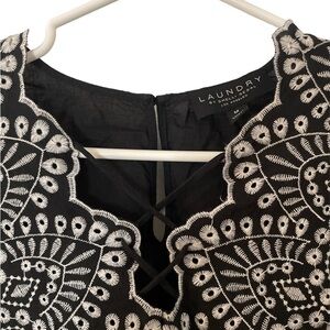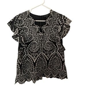 LAUNDRY by Shelli Segal Flutter Sleeve Embroidered Top Medium