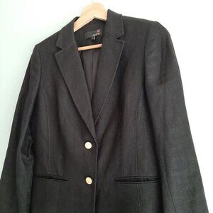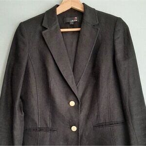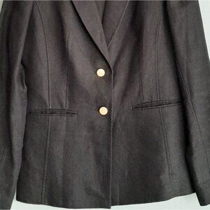 LAURA / 100% Linen Fabric Classic Blazer Jacket Button Front Neutral Black Sz 4