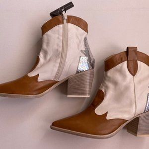 LAURA BELLARIVA Frida Leather TEX Cowboy Ankle BOOTS Brown / Off White